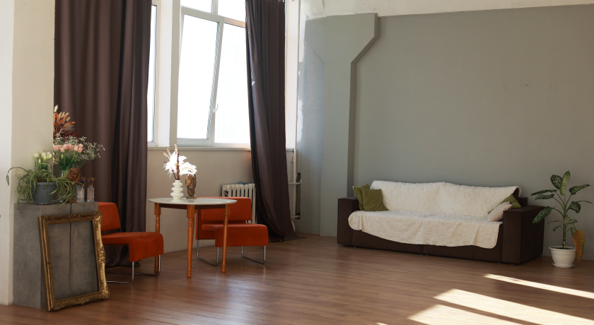 Барный стул, Гриммерный стол, Декорации, Диван, Зеркало, Кресло, Куб, Окно, Стремянка, Сухоцветы, Флаг, Шторы
