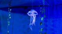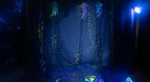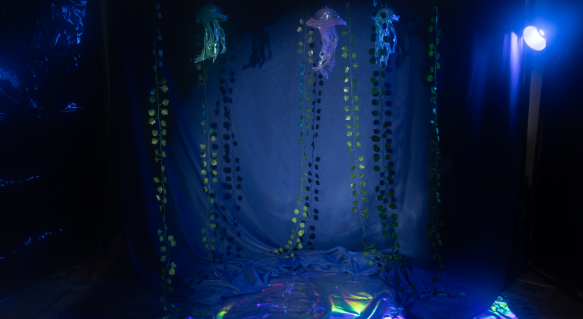 Локация адаптирована под съемку с эффектом "Под водой". Зеркальный потолок и светоотражающий пол погружают в атмосферу океанического пространства.