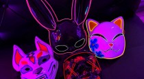 Реквизит: Включены ключевые элементы: старый ТВ, монитор, черный диван, бочка. Уникальный реквизит — набор неоновых масок для создания психоделических образов.