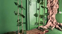 Декор: Два искусственных дерева (уникальный реквизит), прочные декоративные качели, композиция из камней.