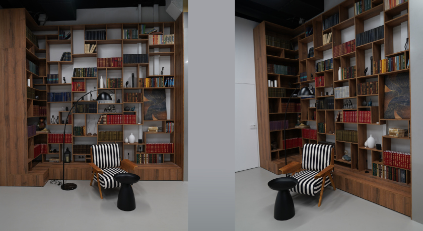 Большой просторный зал, включающий в себя 6 разных интерьерных локаций