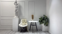 Светлая минималистичная зона с лепниной, скульптурой и спокойной палитрой. Чистый, элегантный фон для: