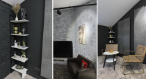 Тёмная фактурная стена, декоративные панели и продуманные детали интерьера создают премиальный, современный визуал, который отлично смотрится в кадре без перегруженных декораций.