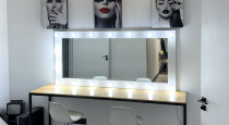 Гримёрная зона внутри зала делает процесс съёмки комфортным и непрерывным: можно быстро подготовить модель, внести правки в образ и сразу вернуться в кадр, не теряя времени и ритма работы.