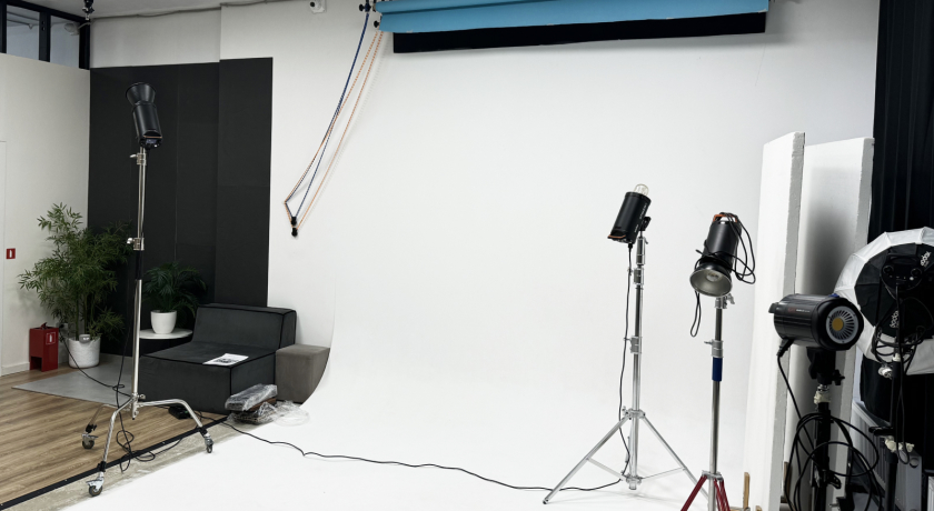 • Локации зала: белая локация, детская комната, спальня, парковка, бетонная стена, стол для предметной съёмки