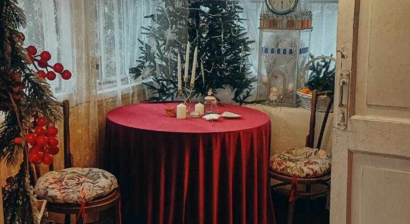 Атмосфера: Интимная, тёплая, немного задумчивая. Мягкий свет от настольных ламп и свечей отражается в массивном деревянном зеркале, а настоящая буржуйка (не бутафорская) напоминает о самом главном зимнем уюте — тепле живого огня. Здесь неярко, но очень душевно.