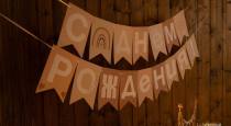 Одна часть зала оформлена для Дней Рождений Ваших малышей. Есть деревянные цифры "1" и "2", надувные - "3" и "4", также кубики "1,2,3,4,5".
