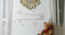 Одна часть зала оформлена для Дней Рождений Ваших малышей. Есть деревянные цифры "1" и "2", надувные - "3" и "4", также кубики "1,2,3,4,5".
