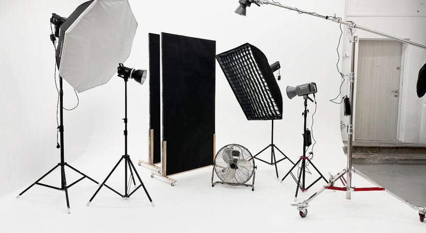 октобокс 120см, софт боксы 120х80см и 60х60см с сотами, зонты, рефлекторы, соты, цветные фильтры, насадка конус с сотами, 2 флага 1х2м, стойка журавль, штатив для фотоаппарата и телефона, вентилятор, проектор.