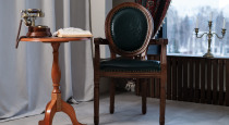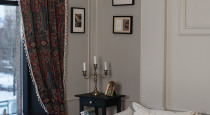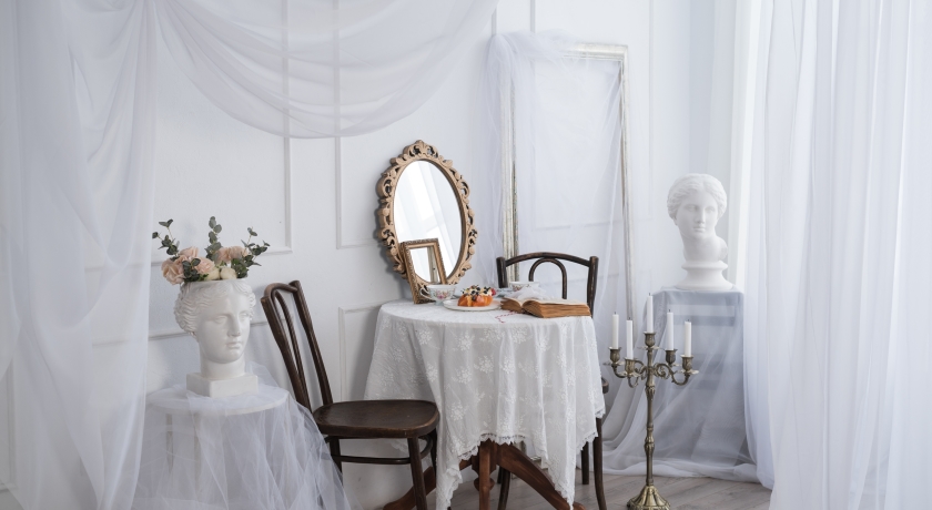 Гипсовая скульптура, Декорации, Журнальный столик, Зеркало, Картины, Ковёр, Кресло, Люстра, Мольберт, Пуф, Стул, Сухоцветы, Телефон