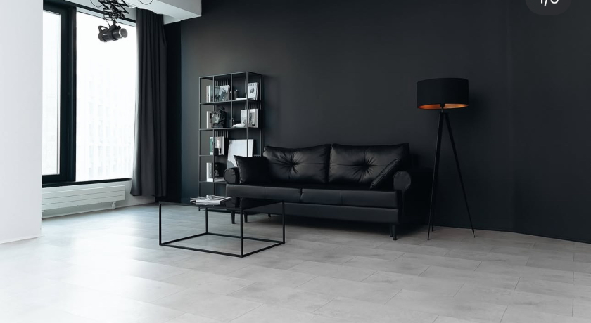 Белоснежная циклорама отлично гармонирует с контрастным черным цветом панорамных окон. Вы получите невероятно эффектные фотографии.