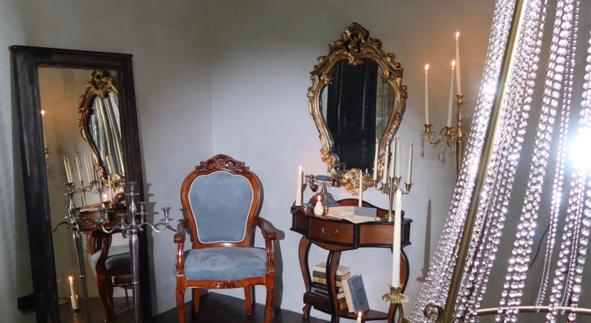 Одна часть зала в стиле Ампир и первая в Крыму огромная Люстра-качели. Фотографироваться можно не только возле нее, но и в ней. Выдерживает большой вес, можно раскачиваться для динамичных фото и видео.