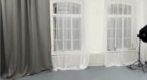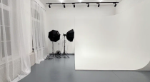 49 м², белая угловая циклорама 3 × 3 м, рулонные фотофоны, зеркало