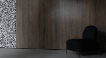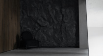 - Фактурные стены: имитация скалы, тёмный ламинат и каллиграфия