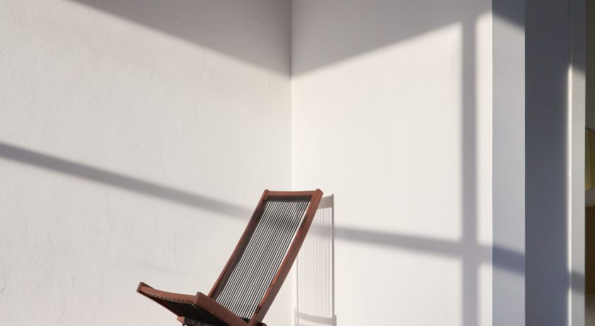 Дерево, обработанное особым образом, создает ощущение не поддельной грубой ручной работы. Контраст дерева дополняет авторский диван из белой шерсти. Очень светлый зал с циклорамой и освещением по двум сторонам.