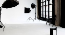 Зал располагает тремя источниками Profoto D1 500, большими окнами, фрост-рамой 200х200 см, блэкаут шторами, позволяющими удобно регулировать поступающий солнечный свет и гримерным столом.