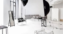 Все элементы декора легко передвигаются для абсолютного комфорта во время творческого процесса, а также зал располагает тремя источниками Profoto D1 500, блэкаут шторами, гримерным столом и высоким мансардным окном.