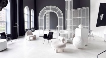 Здесь множество дизайнерских аксессуаров в сочетании с мягкими и нежными формами предметов интерьера, превращают рутинную рабочую суматоху в элегантный и несколько пафосный кадр, словно вырезанный из фильма.