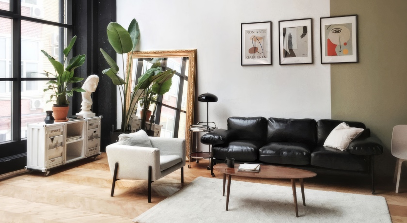 Антресоль – это помещение квартиры-студии с большим обеденным столом, укутанным нестандартным освещением и зоной отдыха с ассиметричным декором стен. Кажется, что хозяин квартиры только что вышел за свежим кофе на завтрак и газетой. Но пока его нет, Антресоль позволит вам реализовать любую эстетическую задумку, связанную со стильными домашними интерьерами.