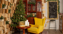 Стены разной фактуры (обои ретро, штукатурка, зеленый);