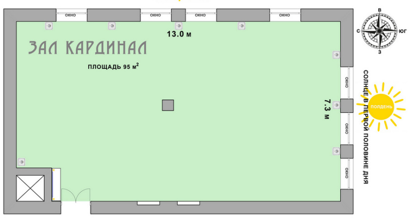 Возможность производить съемки с естественным освещением. Расположение солнца уточняйте у администратора.