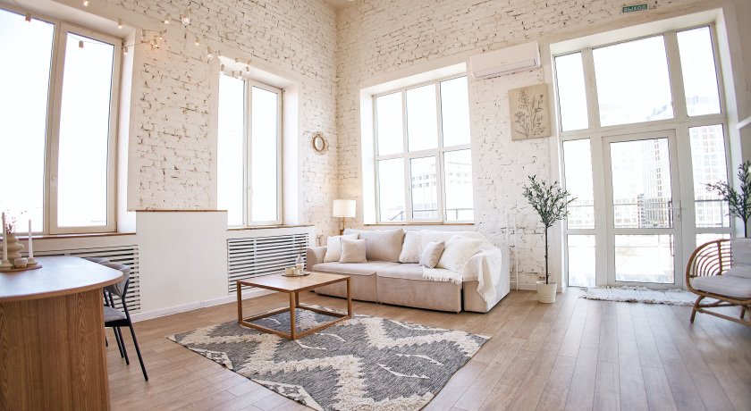 Пространство 36 кв. м. в стиле лофт, белые кирпичные стены