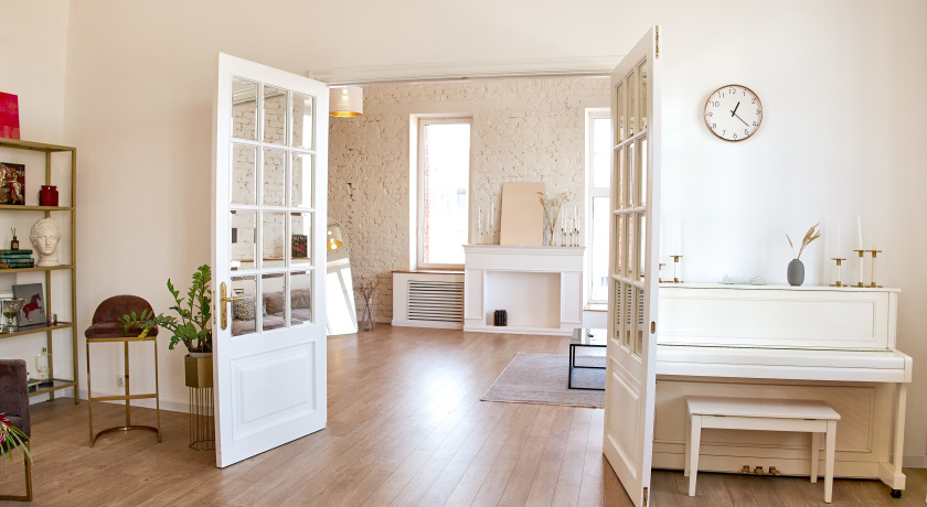 Зал ”Home” соединён c залом "Cabinet" большой распашной классической дверью