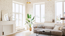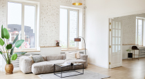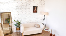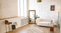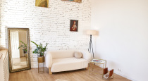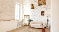 Пространство 36 кв. м. в стиле лофт, белые кирпичные стены