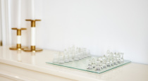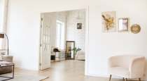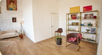- зона с барным бархатным стулом у большой зеркальной распашной двери
