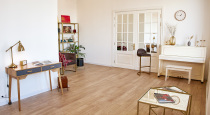 Пространство 35 кв. м., стильный кабинет с несколькими зонами: