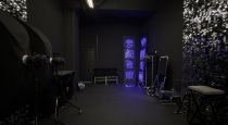 - В этом зале гримёрное место находится справа от входа и отделено от съёмочного павильона в небольшую комнатку внутри него. Внешняя стена гримёрки тоже выкрашена фактурно в бежево-розовый оттенок.