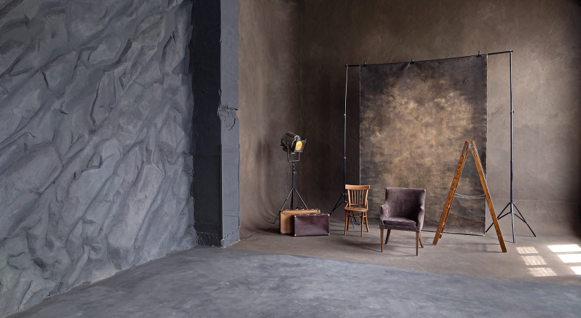 Зал Барселона - это мастерская художника, которая располагает к творчеству. Здесь фотограф или видеограф может работать с различными фактурами: металл, различные по цвету темные стены, который сочетаются между, а ещё холсты ручной работы. Также мы не стали убирать металлические строительные леса после ремонта, а просто покрасили их в черный цвет, и такое решение пришлось по вкусу многим фотографам. Иногда так хочется чего-нибудь необычного, скажите вы? Есть такое в зале Барселона! Черная металлическая лестница с которой получаются классные фотографии с нестандартным ракурсом. Попробуйте и убедитесь сами.