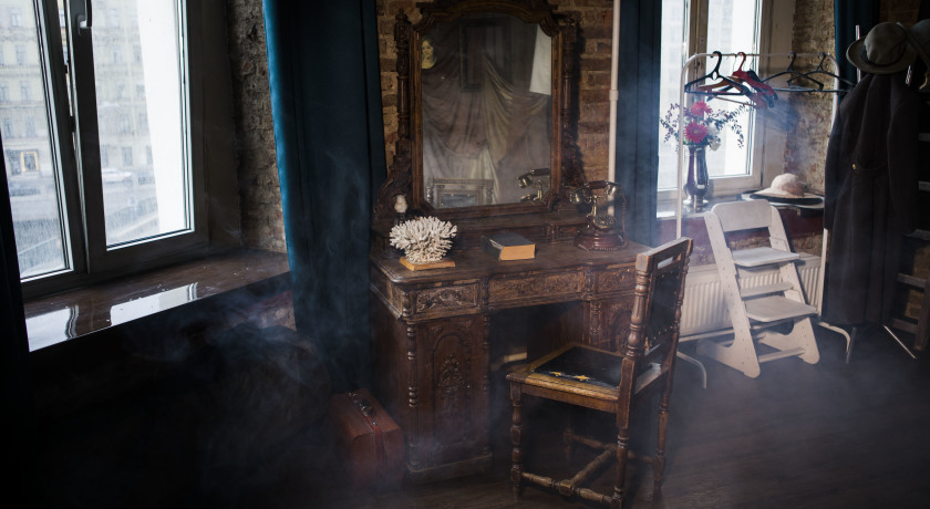 Винтаж — состоит из двух зон — одна винтажная, с ванной, сеном и тканями, тремя большими окнами на Измайловский проспект и набережную Фонтанки (дневное и вечернее солнце), вторая с серой циклорамой, бумажными фонами и двумя окнами на Фонтанку: