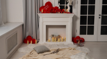 — черный портал (камин) с зеркалом, ваза, свечи, люстра (высота регулируется);
