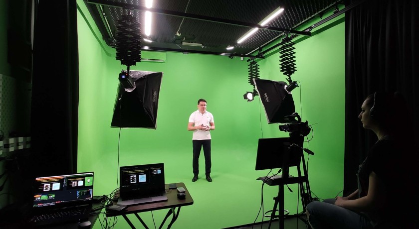 Для аренды доступна хромакей циклорама. Циклорама окрашена профессиональной зеленой краской, установлен мягкий свет для равномерной заливки с цветовой температурой 5600K. Размеры циклорамы 4x4 метра. Отсутствие жестких теней и световых перепадов позволяет легко отделить снимаемый объект от хромакей фона на постпродакшене.