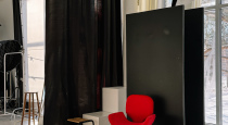 зал оснащен циклорамой,фонами,стеной пастельного оттенка и атрибутами для простых, но красивых кадров(стулья,большой бежевый диван)