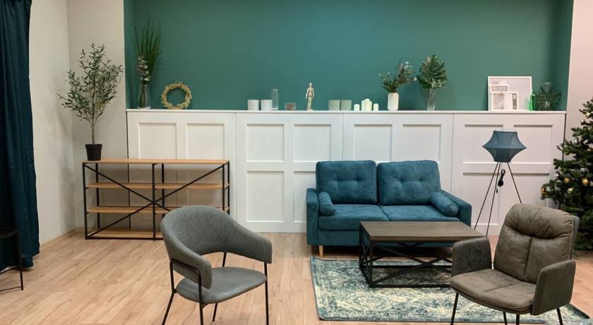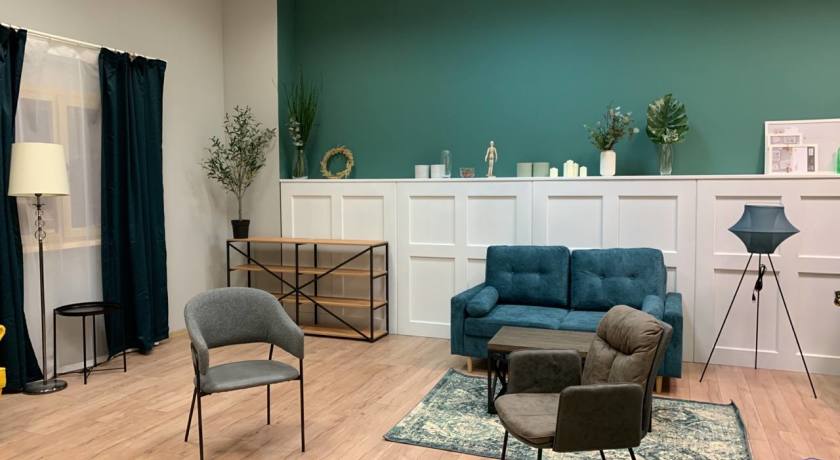 Большой универсальный интерьер, подходит для любых съёмок от интервью до рекламы.