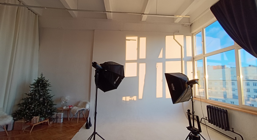 У нас снимают каталоги для маркетплейс, для этого есть два импульсных источника и два постоянных. Белая циклорама и бумажные фоны.