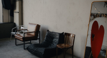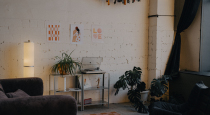 Стильная, чистая студия с пуфиками, подсветкой и разными стульчиками, вентилятором и зеркалом. Самое важное-большое витражное окно со шторками. Все понравилось!