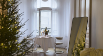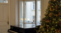 В зале красивая потолочная лепнина, украшенная большой итальянской люстрой! Здесь отлично вписался антикварный рояль Becker, который идеально дополнил интерьер!
