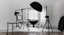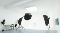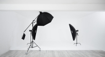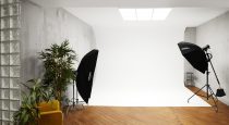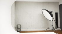 Белая стена без углов позволяет значительно расширить угол съемки, а три крепления на потолке - осветить стену или добавить контурный свет на предмете съемки любым из источников постоянного света.