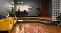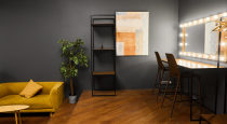 Гримерная и примерочная зоны отделены от зала, чтобы не мешать основному рабочему процессу.