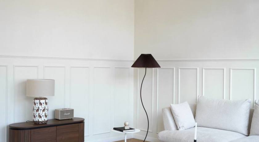 Зал Apart — уютный интерьер в стиле европейских апартаментов. Светлые бежевые оттенки с чёрными деталями.