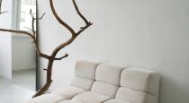 Ассиметричные формы, дизайнерские предметы декора, белые стены и естественный свет.
