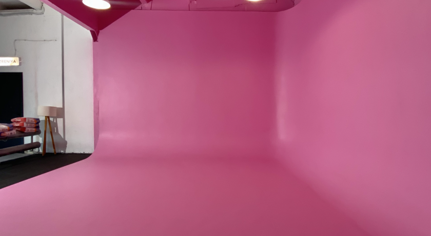 Фотостудия с циклорамой POLEMOSKVA состоит из трех залов, и нейминг главной рабочей зоны - DUHOVNOE POLE, где помимо белой стены с эффектом безграничного пространства есть узнаваемая синяя лестница, входящие в стоимость аренды бумажные фоны и набор отличных импульсов.