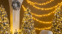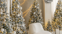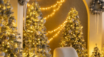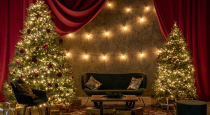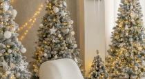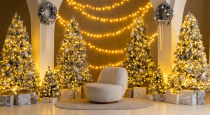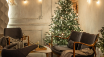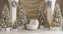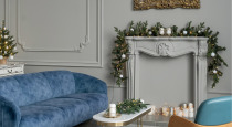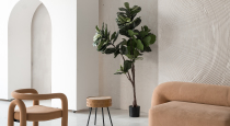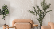 Из мебели и декора в зале имеются диван, кресло, барный стул, пуф, стул, софа, журнальный столик, искусственные растения.