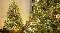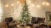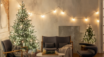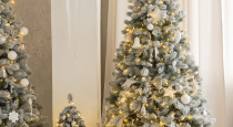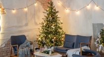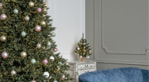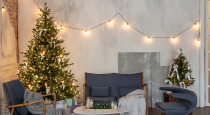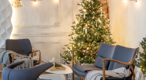 Из мебели и декора в зале имеется диван на колёсах, два кресла, пуф, барный стул, два стула, искусственное дерево.