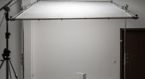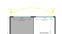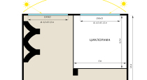 Прямая циклорама шириной 7м, глубиной 5,6м расположенная возле огромного окна.