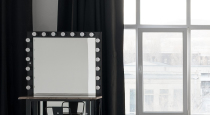 Для комфортной работы в зале имеется гримёрный стол и ростовое зеркало с подсветкой, вешало, отпариватель, музыкальная колонка.
