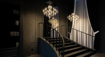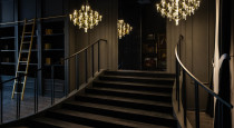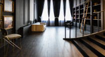 Нейтральные теплые цвета, сложная геометрия стен, необычные элементы на окнах, зеркала и, конечно, невероятный потолок!